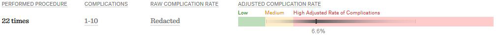 ProPublica, an independent investigative journalism organisation, have published surgeon-level complications rates based on Medicare data. I have already highlighted problems with the reporting of the data: surgeons are described as having a “high adjusted rate of complications” if they fall in the red-zone, despite there being too little data to say whether this has happened by chance.
